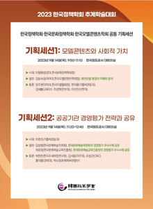 2023 한국정책학회- 한국문화정책학회-한국모델콘텐츠학회 공동 기획세션 (대전 한국철도공사)세미나 주제 : <지속가능한 미래사회를 위한 정책연구: 지역, 세대, 영역 간 상생을 지향하는 정책혁신>