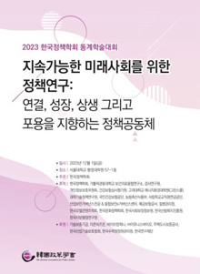 2023 한국정책학회 동계학술대회 공동 주최 (서울대)세미나 주제 : <지속가능한 미래사회를 위한 정책연구: 연결, 성장, 상생 그리고 포용을 지향하는 정책공동체>