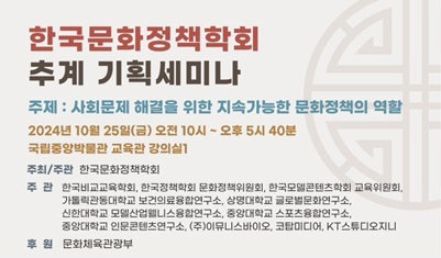 2024 한국문화정책학회 추계기획세미나 (국립중앙박물관)세미나 주제 : 사회문제 해결을 위한 지속가능한 문화정책의 역할